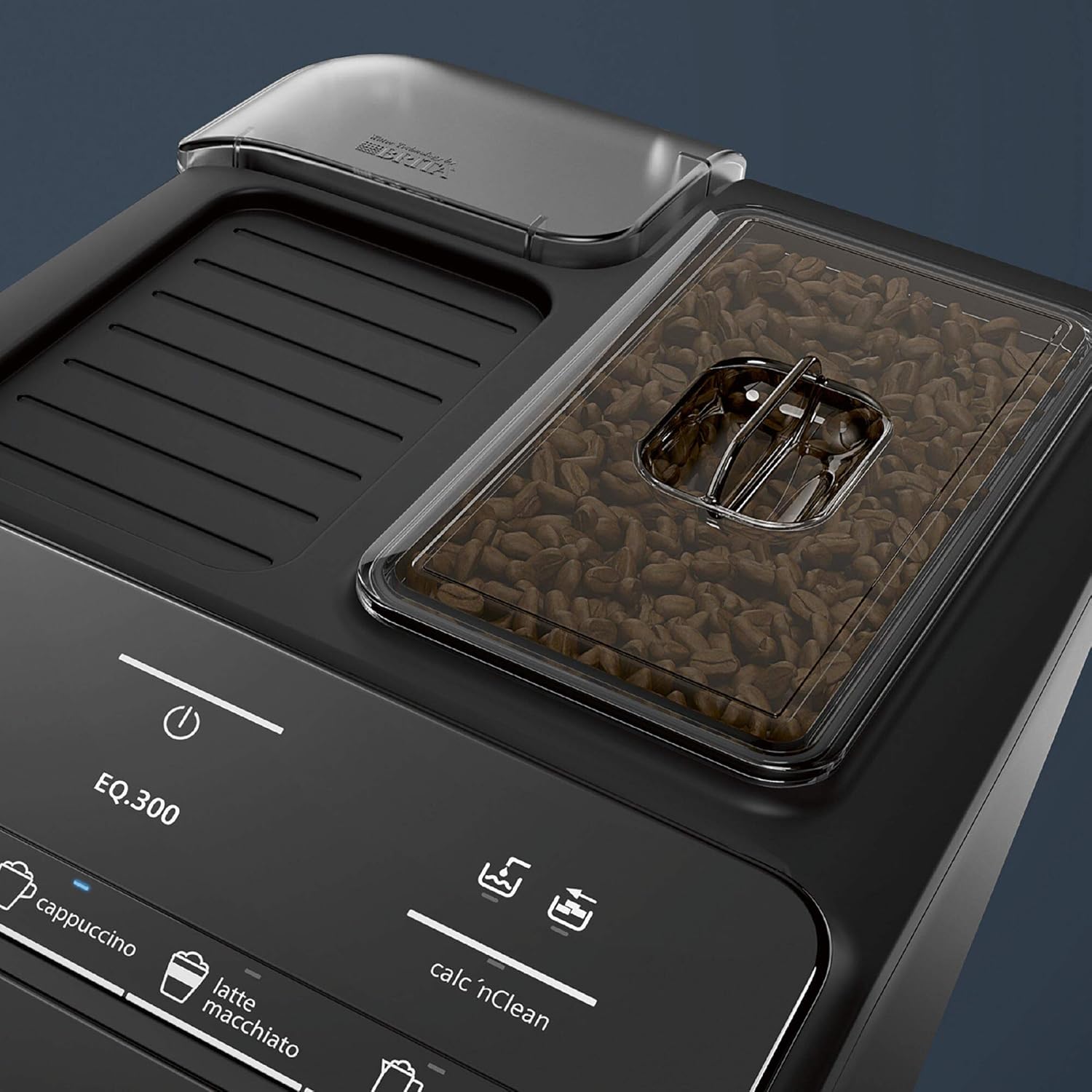La Cafetera Automática Siemens iQ300 dispone de un depósito de agua de 1,4 litros y un sistema de preparación que integra un molinillo de cerámica para utilizar café en grano o molido. Permite ajustar la intensidad y cuenta con una pantalla LED y un panel de control para seleccionar bebidas. Incorpora limpieza automática del grupo de preparación y un espumador para leche. Su capacidad máxima es de unas 15 tazas y el consumo energético es de 1500 W. El equipo está diseñado para uso con conexión eléctrica estándar.