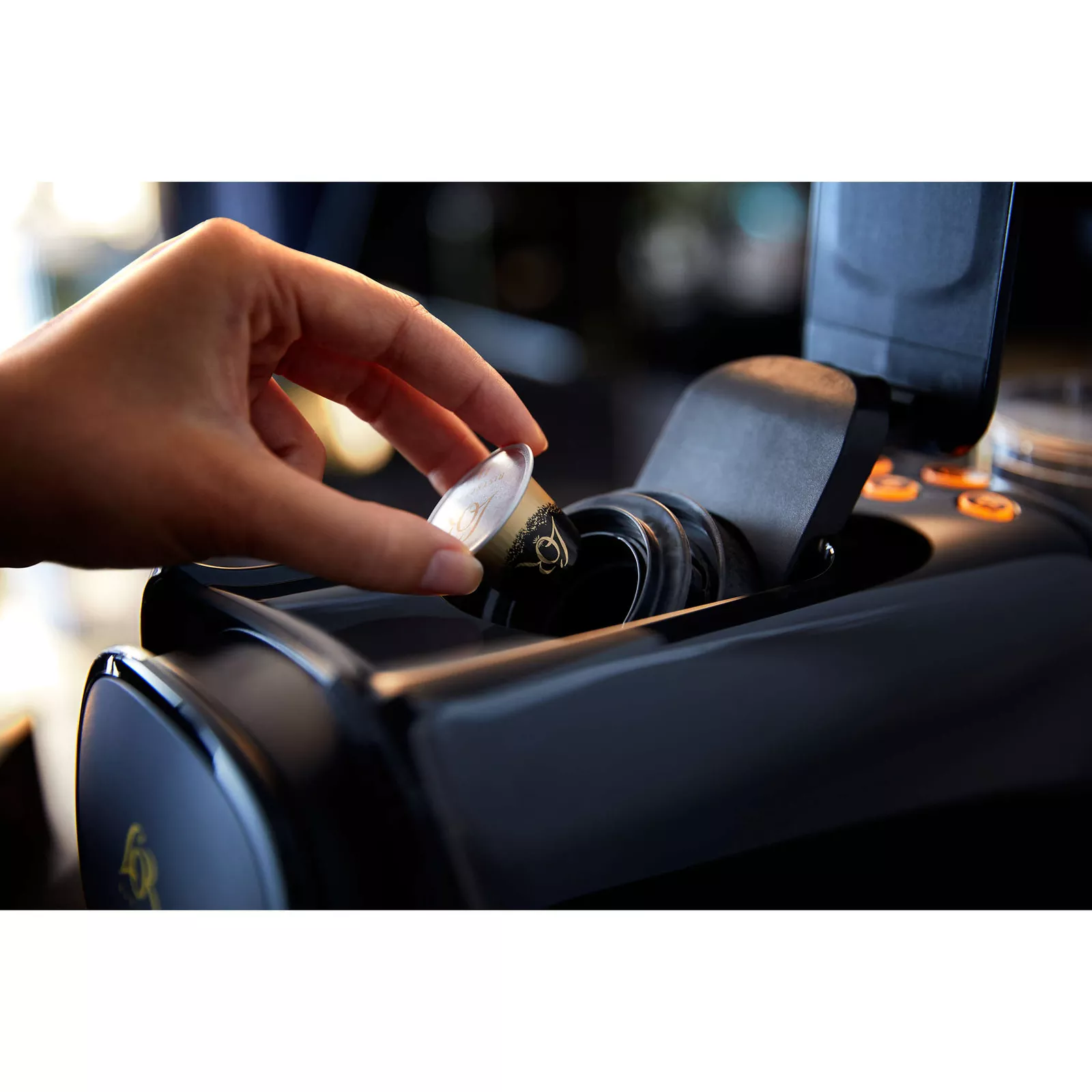 La Cafetera de Cápsulas Philips L’OR Barista System LM8014/60 prepara café mediante cápsulas y dispone de un depósito de agua extraíble de 1 litro. Permite el uso de cápsulas de distintas marcas y cuenta con un soporte ajustable para varias medidas de tazas. Incorpora apagado automático, control de temperatura y un panel de control electrónico para seleccionar opciones de preparación. Funciona conectada a la red eléctrica, tiene un peso aproximado de 4,1 kg y presenta componentes destinados a facilitar el mantenimiento.
