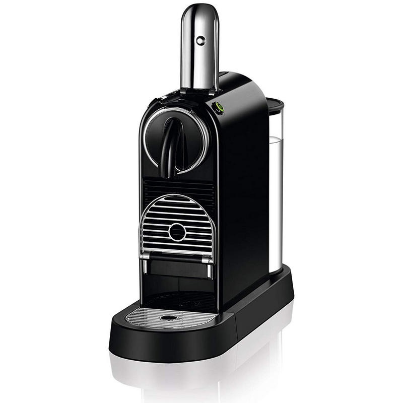 La cafetera DeLonghi Citiz EN167 es un modelo que utiliza cápsulas compatibles Nespresso y funciona con un sistema de extracción de 19 bares. Su potencia es de 1260 W y emplea un calentamiento termoblock para alcanzar la temperatura requerida en la elaboración del café. El depósito de agua extraíble tiene una capacidad de 1 litro y se complementa con un compartimento destinado a las cápsulas usadas. El panel de control incorpora botones para seleccionar café corto o largo y la bandeja de goteo desmontable permite gestionar el mantenimiento básico del equipo.
