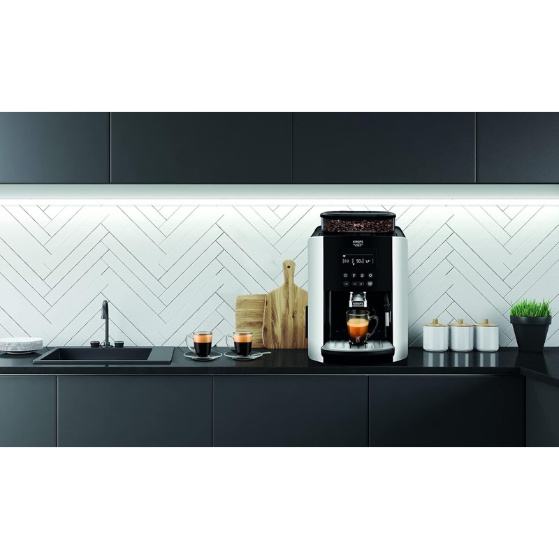 La cafetera Krups EA817810 es un modelo automático con una potencia de 1450 W y un depósito de agua extraíble de 1,7 litros. Incorpora un molino con muelas de acero inoxidable para café en grano y admite también café molido. Dispone de un sistema de extracción destinado a elaborar espresso y otras variantes, junto con un panel de control para seleccionar configuraciones. Incluye un sistema de calefacción rápido, una función de limpieza automática y un módulo de espuma de leche. Su estructura integra componentes diseñados para gestionar las funciones básicas de preparación.