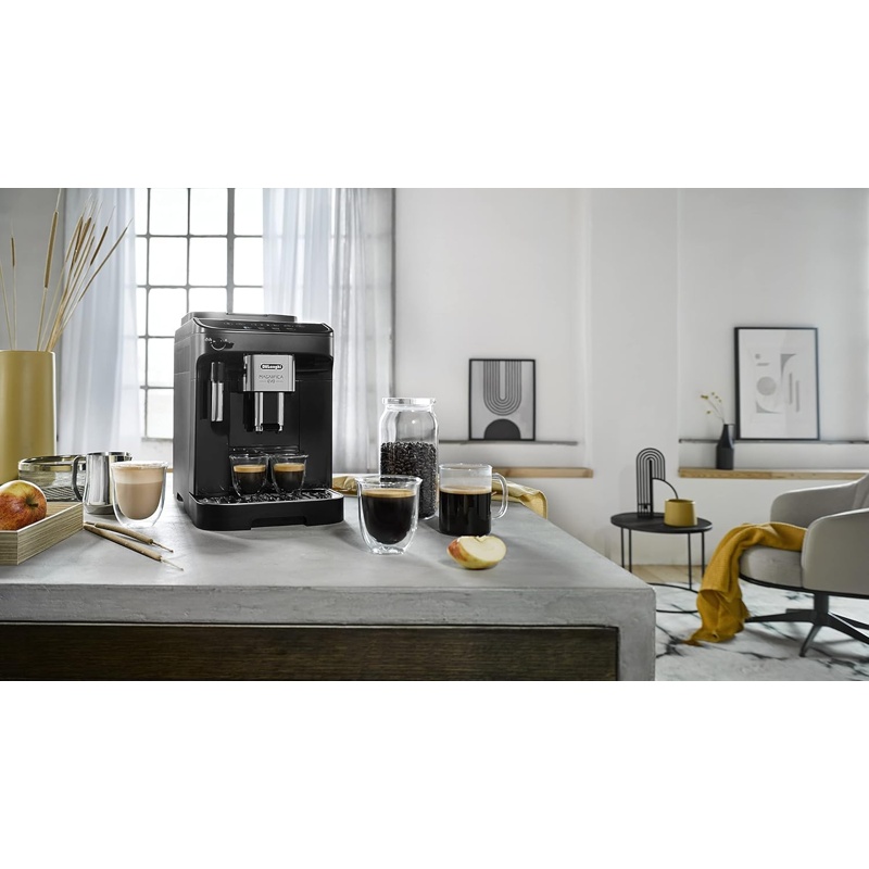 La cafetera De’Longhi Magnifica EVO ECAM290.21.B es un modelo superautomático con una potencia de 1450 W y una bomba de 15 bares. Incorpora un molino con 13 niveles de ajuste para café en grano y admite también café molido y tabletas. Dispone de un depósito de agua de 1,8 litros, un sistema de calentamiento rápido y un panel de control con pantalla LCD. Incluye una boquilla de vapor para elaboraciones con leche, bandeja calientatazas y base antideslizante. El equipo integra un sistema de limpieza automática para el mantenimiento interno.
